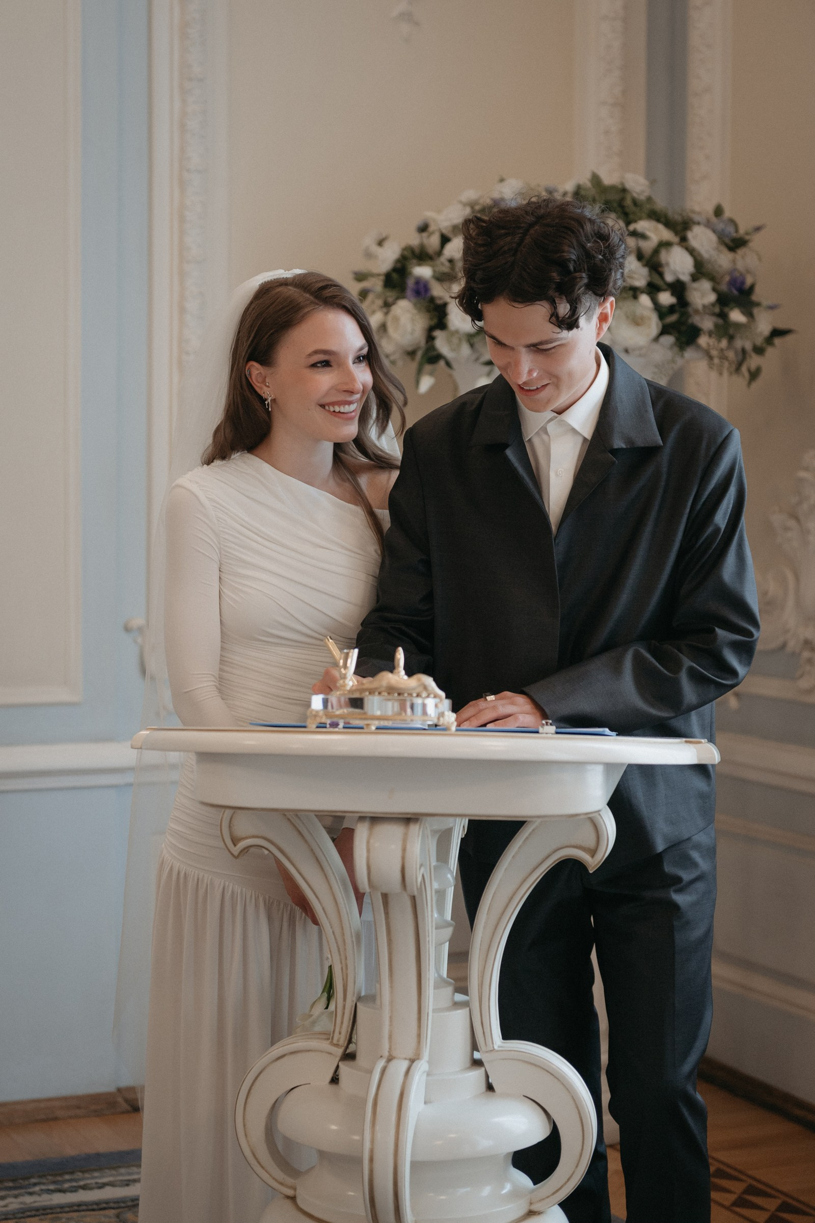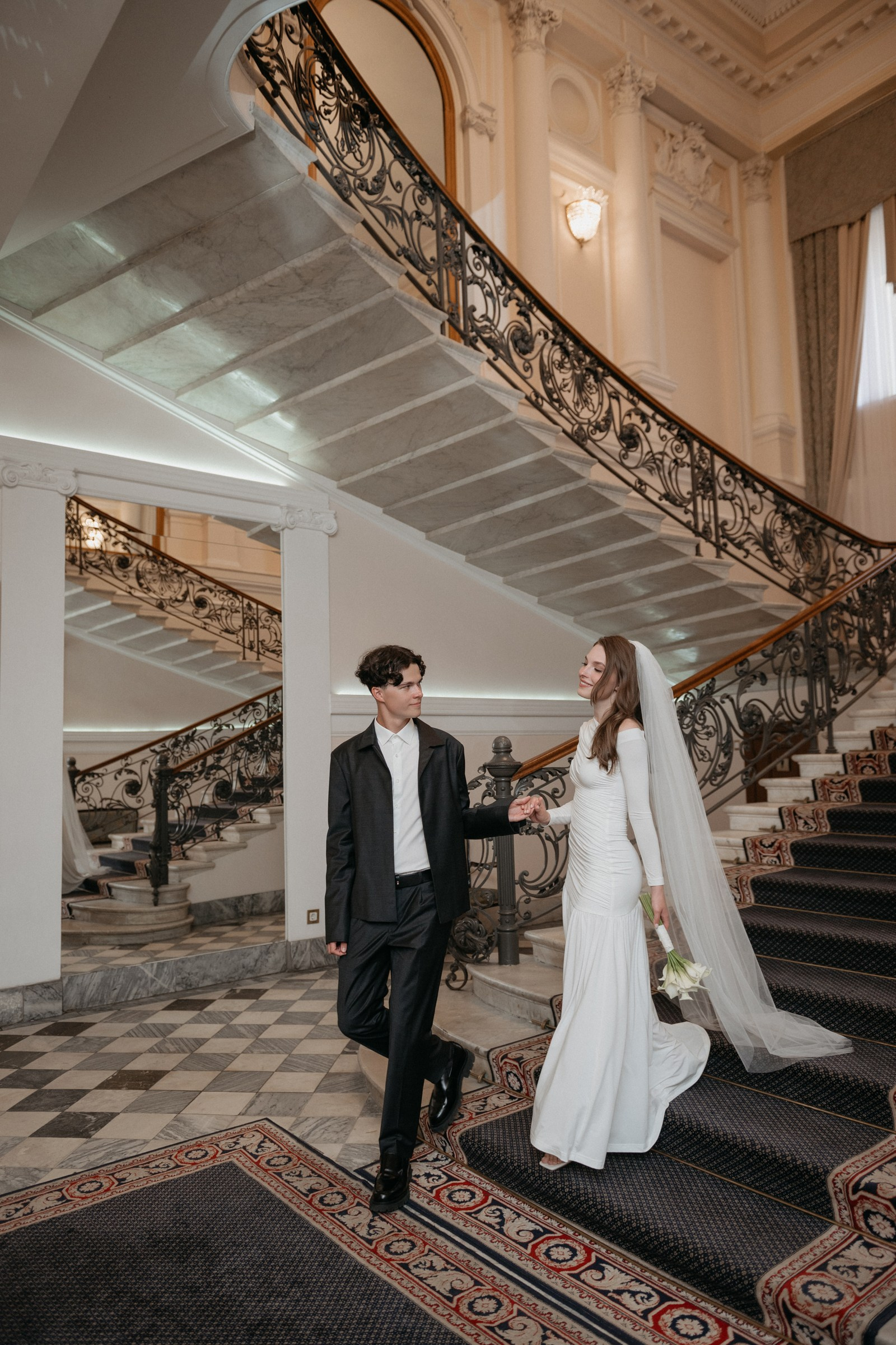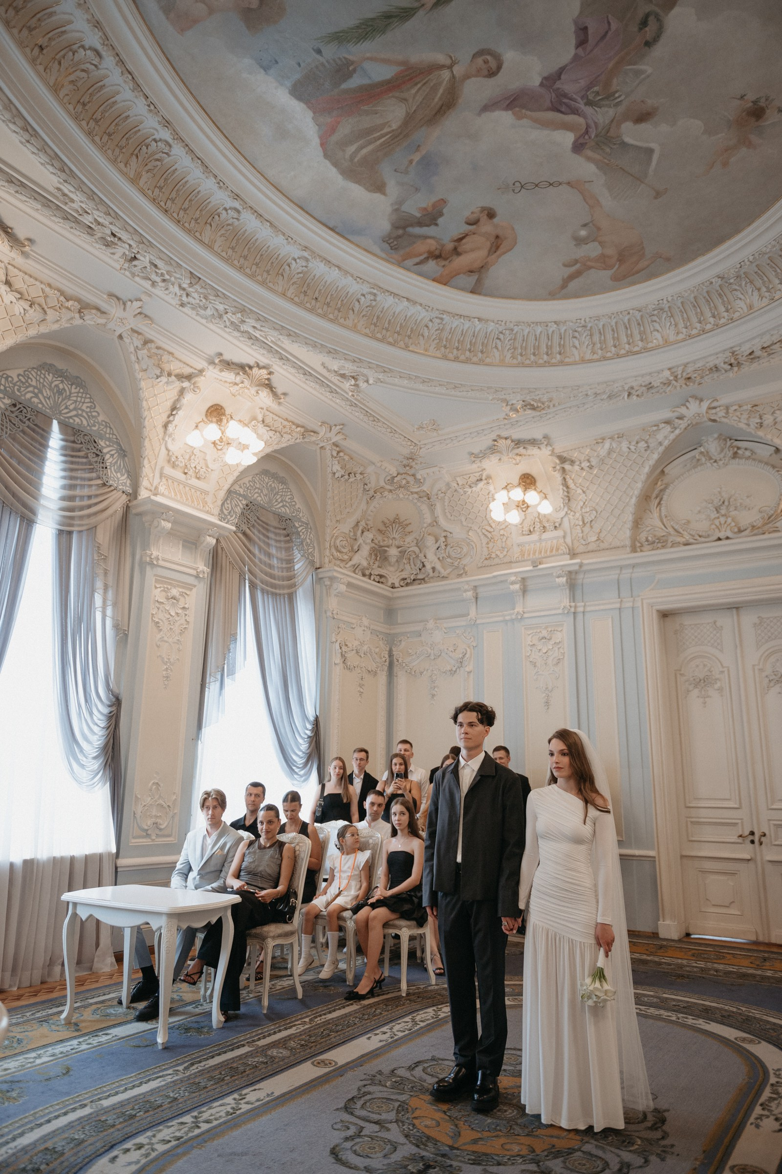 Свадебная фотосессия в академии А. Л. Штиглица и регистрация бракосочетания в первом Дворце