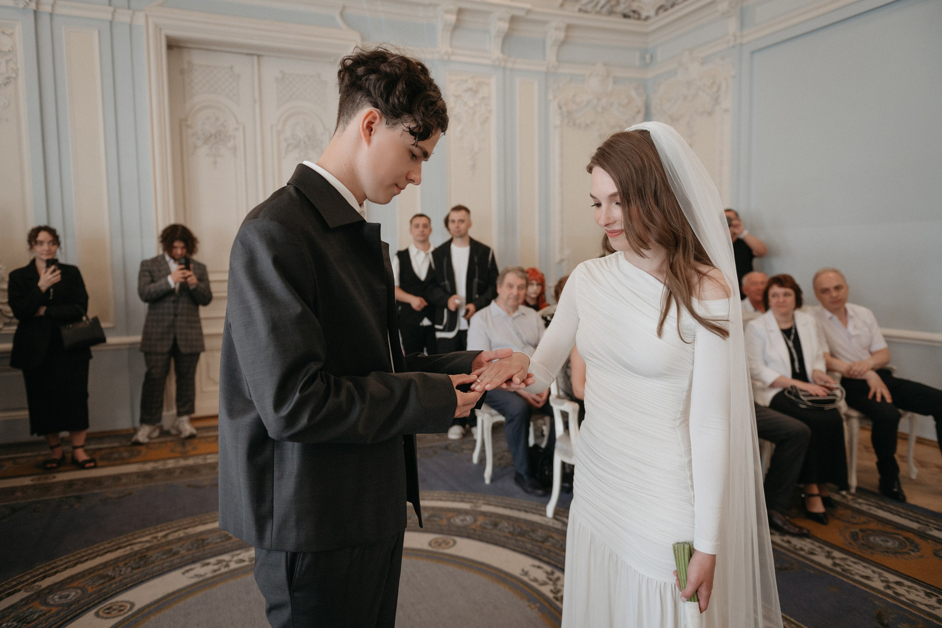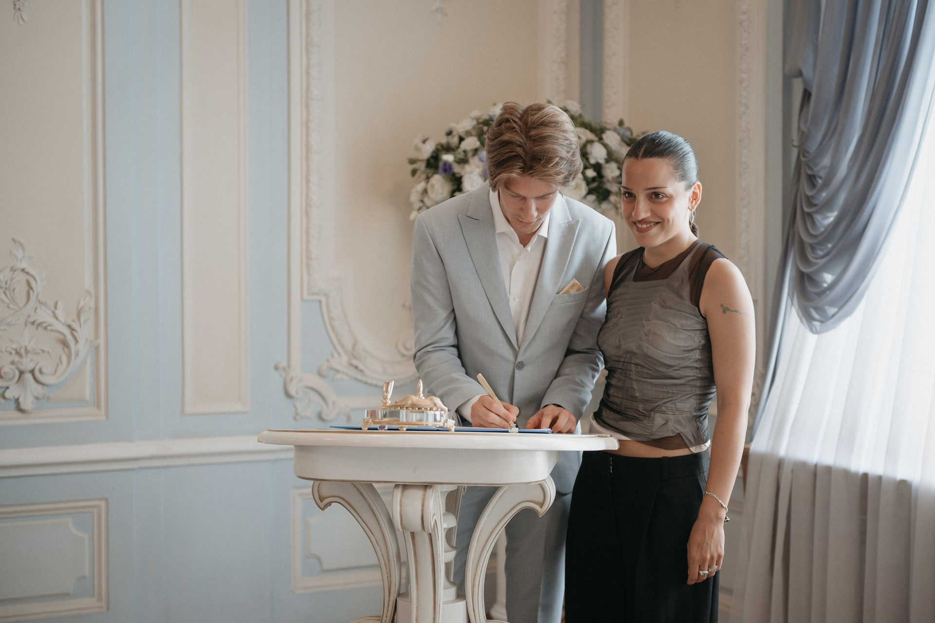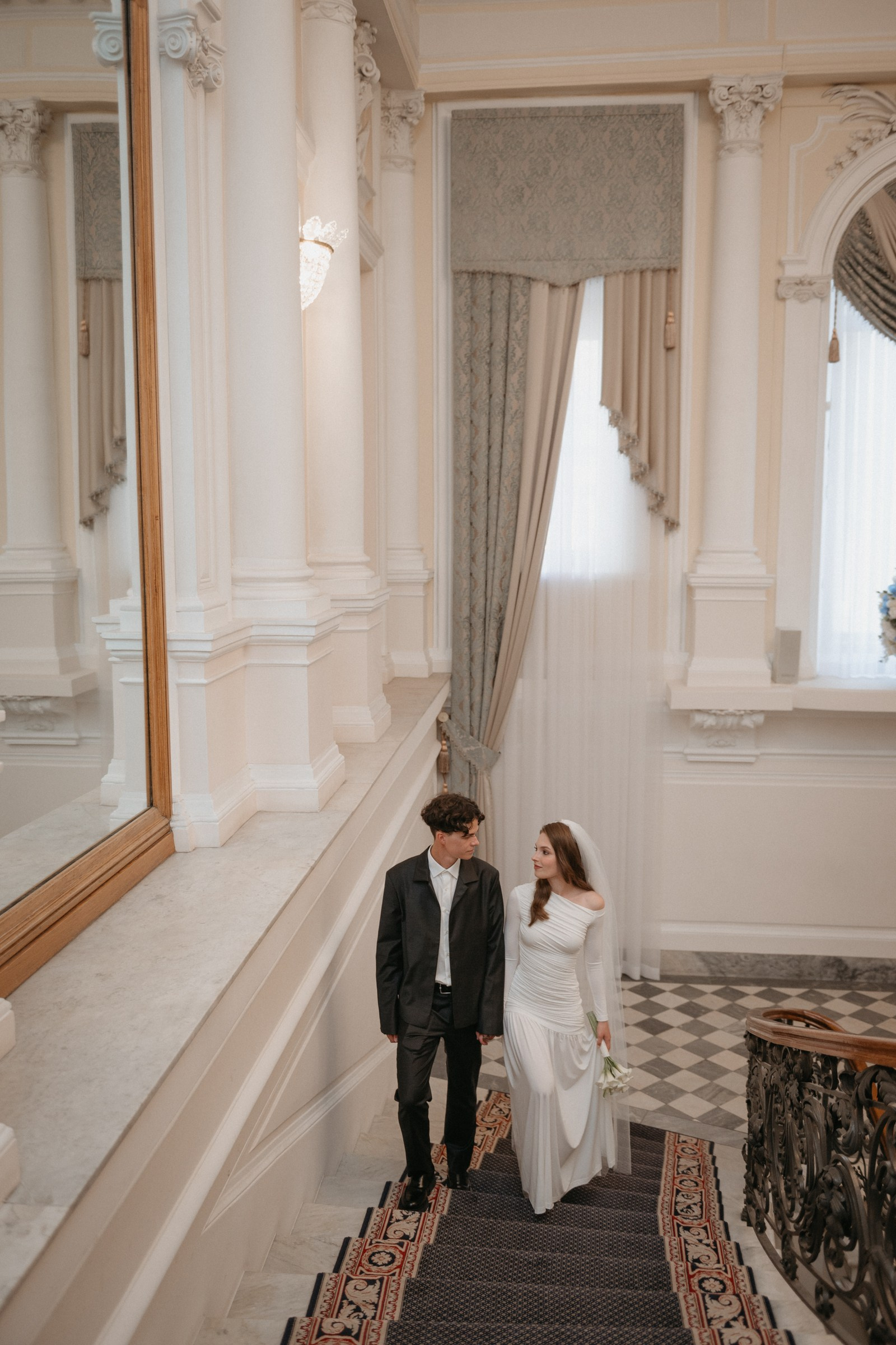 Свадебная фотосессия в академии А. Л. Штиглица и регистрация бракосочетания в первом Дворце