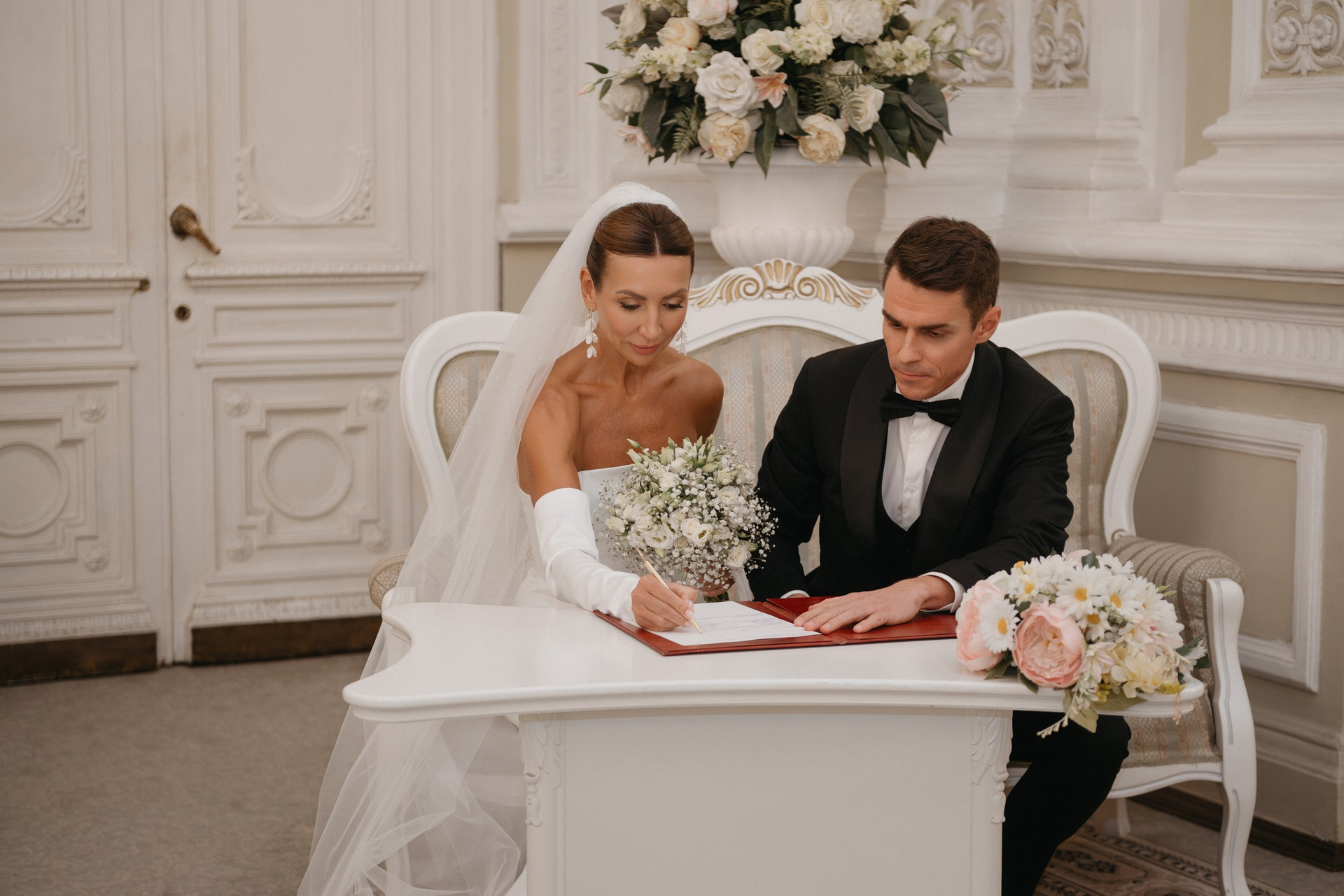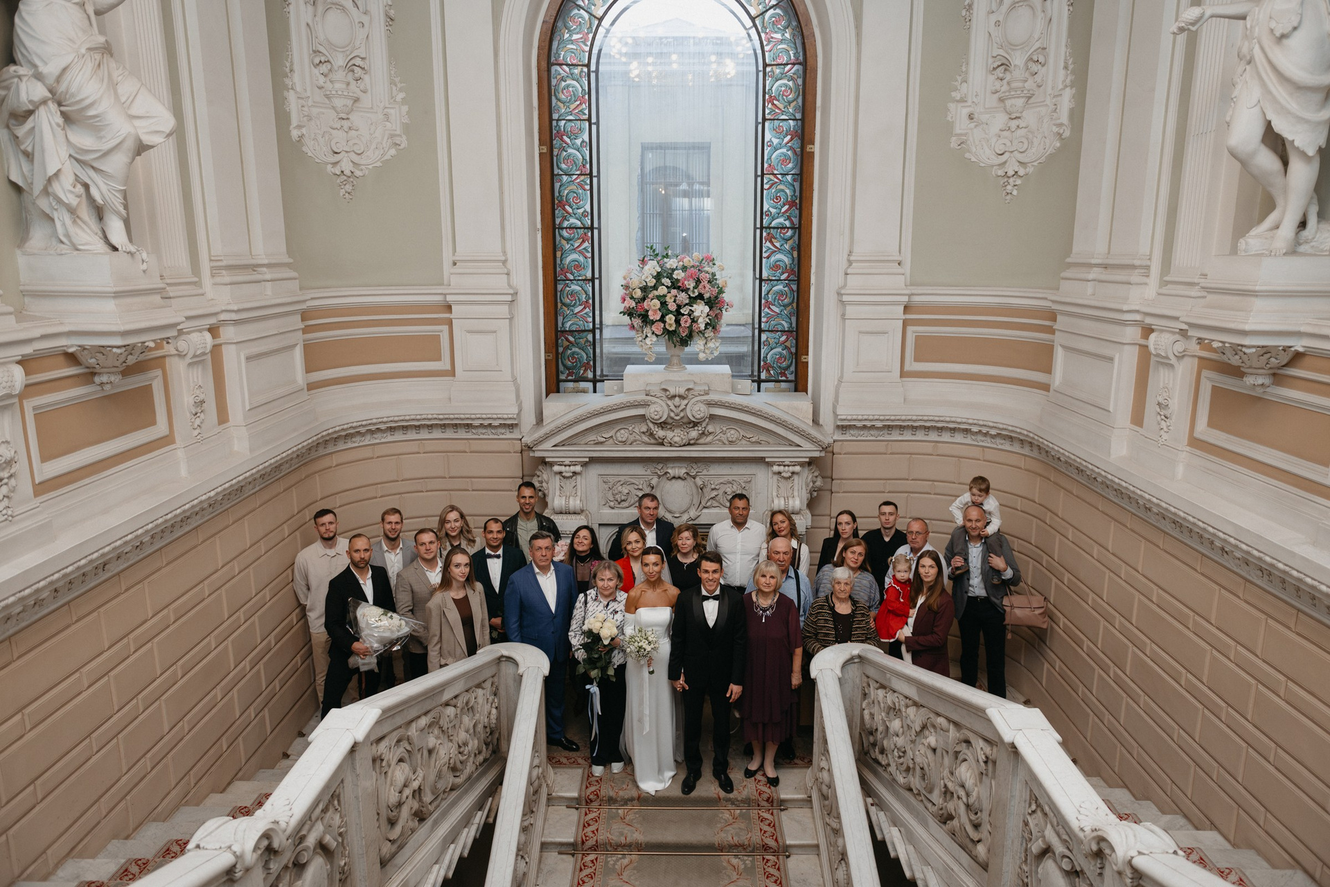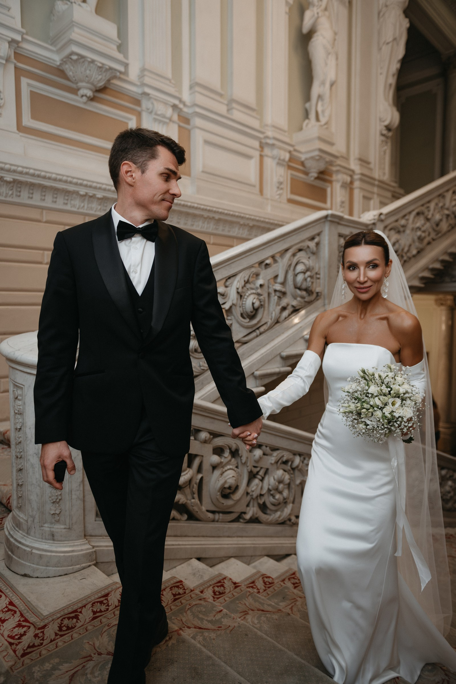 Свадебная фотосессия в академии А. Л. Штиглица и регистрация бракосочетания в первом Дворце