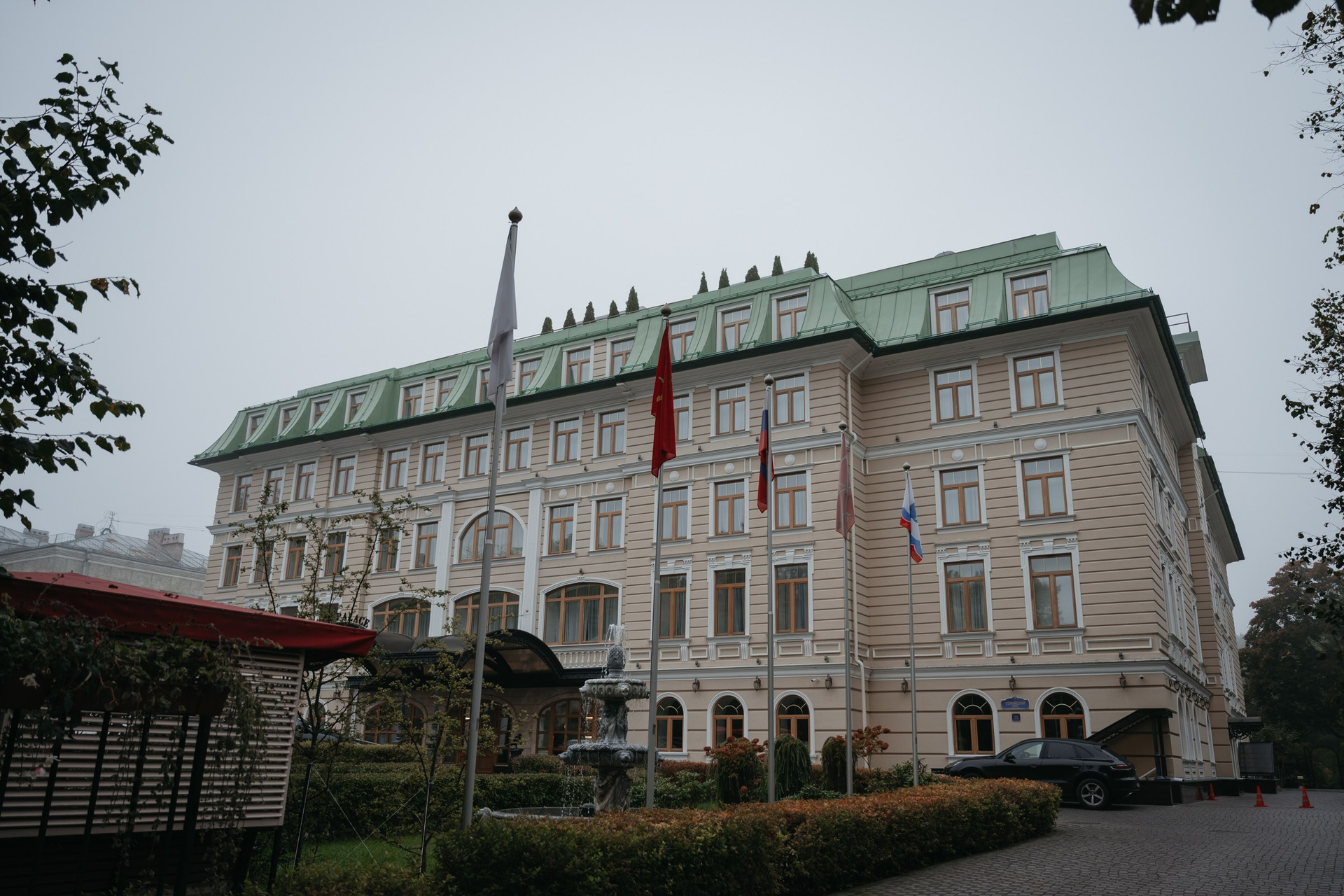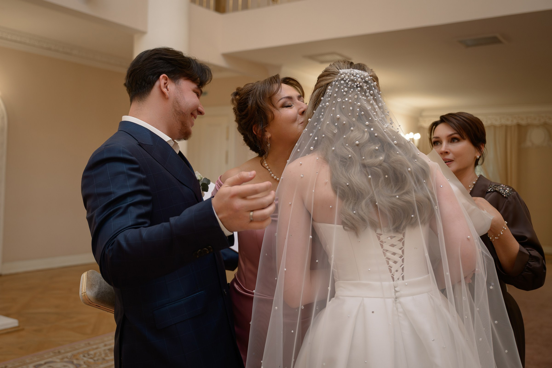 Утренние сборы жениха и невесты в апартаментах с видом на Казанский собор.