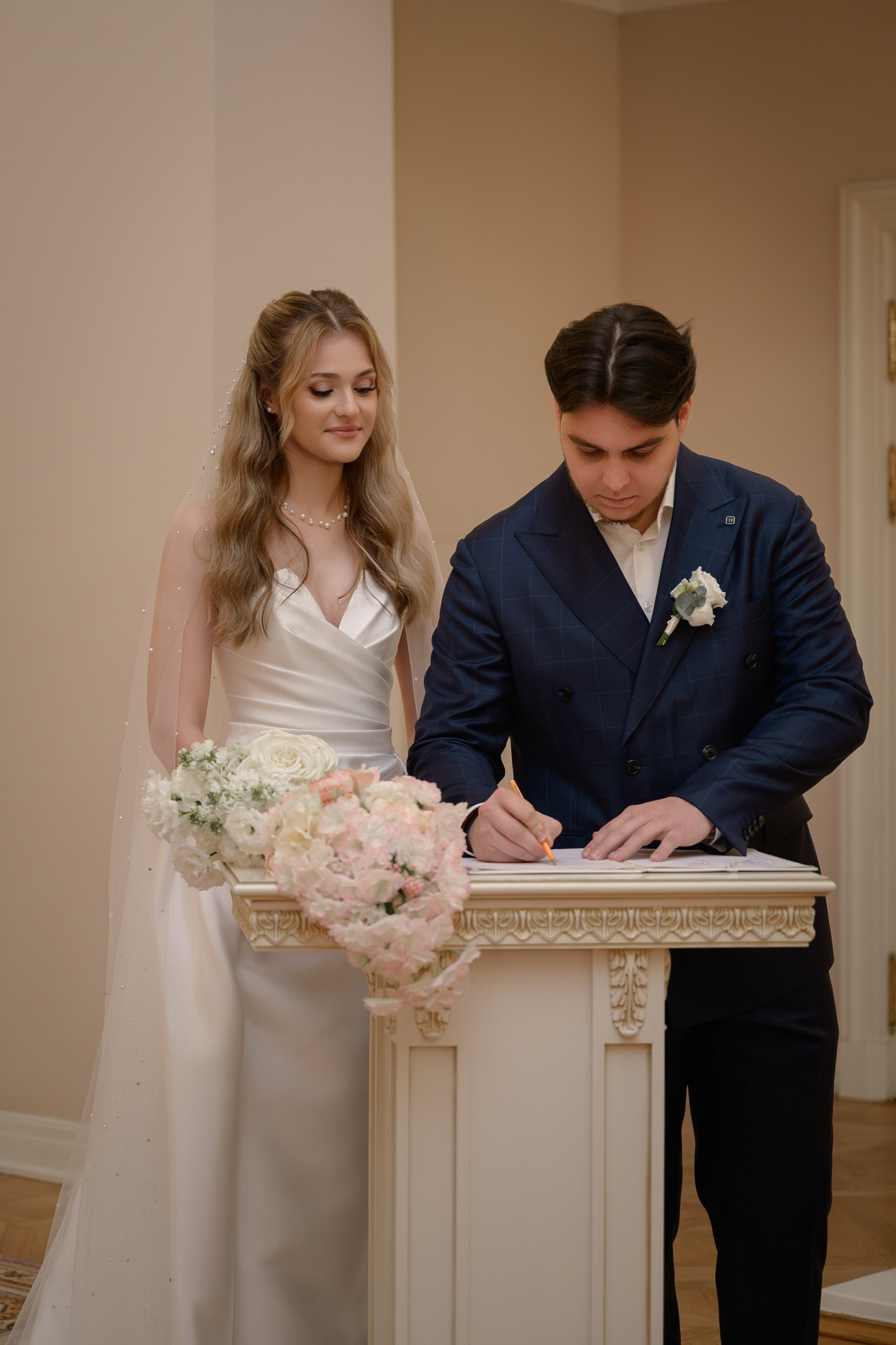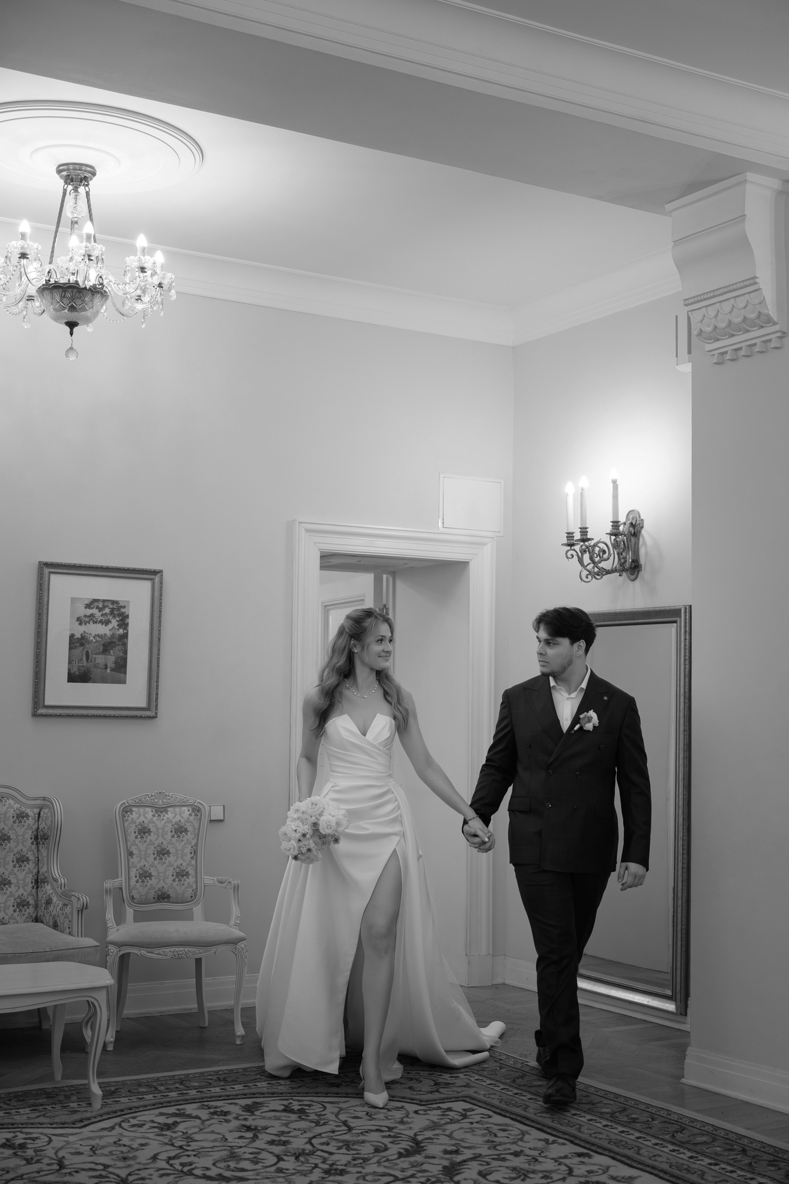 Свадебная фотосессия в академии А. Л. Штиглица и регистрация бракосочетания в первом Дворце